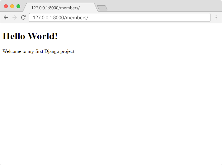 In the browser window, type 127.0.0.1:8000/members/ in the address bar.