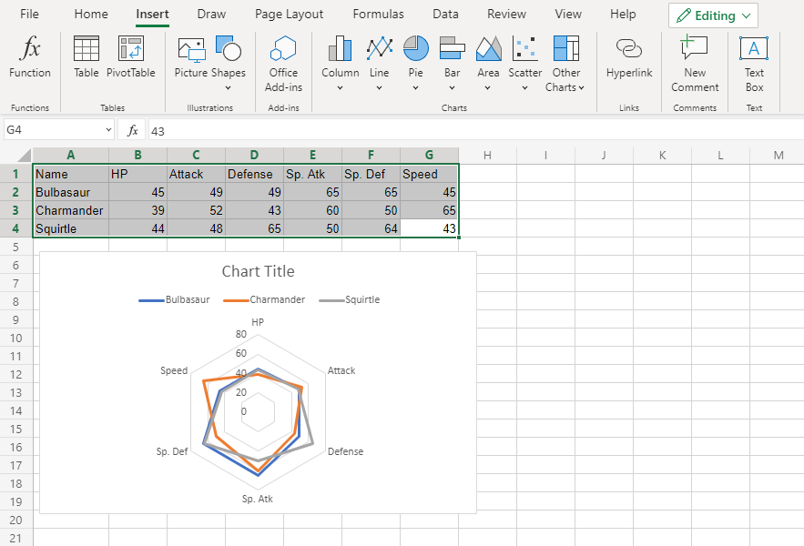 Note: Radar chart is also known as web chart, spider chart and star chart.