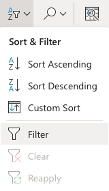 Note: Filter is similar to formatting a table, but it can be applied and deactivated.