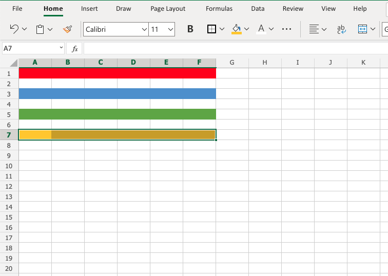 Colors are applied to cells by using the "Fill color" function.