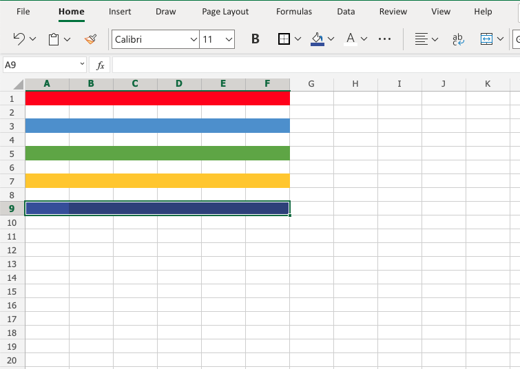 A9:F9 - Open color options
