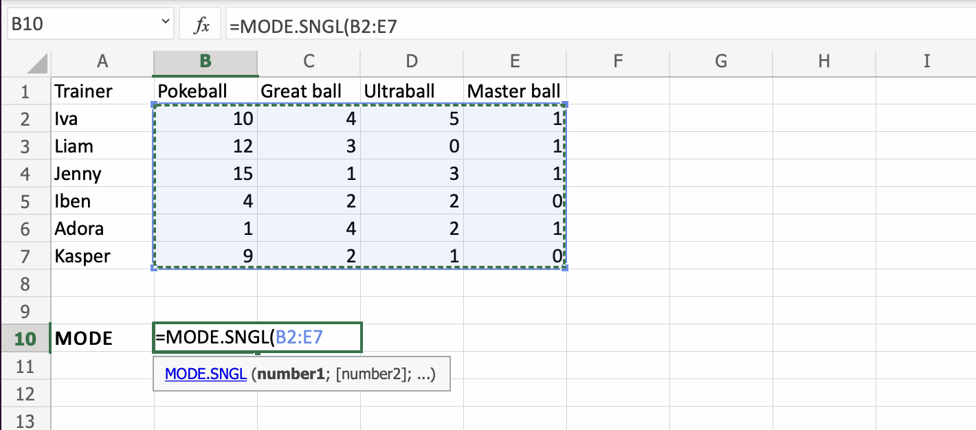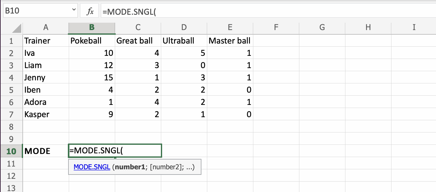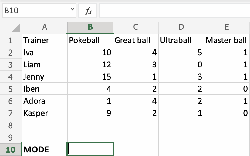 Let's have a look at an example where we help the Pokemon trainers to calculate the mode of numbers of Pokeballs.