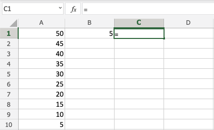 You got it! You have successfully used absolute reference to multiply B1(5) with the range A1:A10.