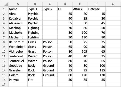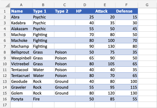 Convert the range into a table.