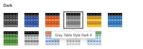 Apply Gray, Table Style Dark 4. Found in the Dark category.