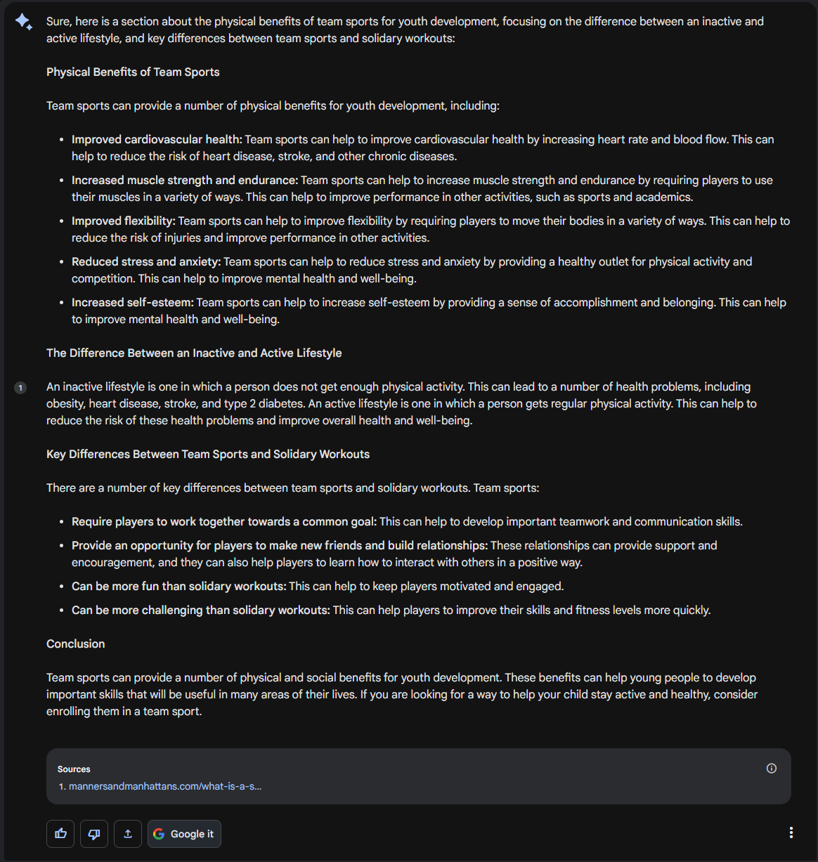 Now you have a good starting point, a first draft you can use to start writing further. Adding examples and sources for these claims would be the next natural step. But you have used Bard as a tool to help you get started.