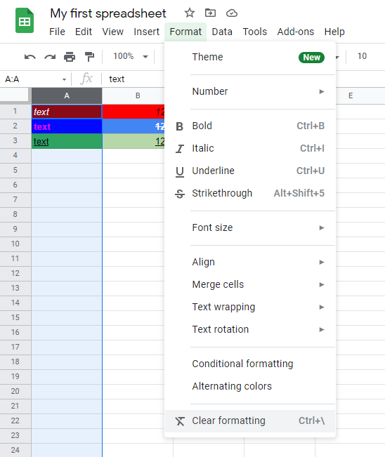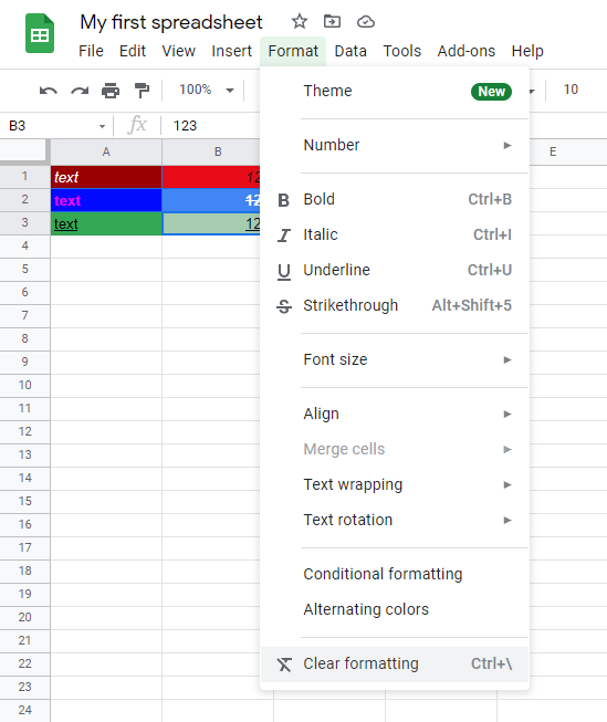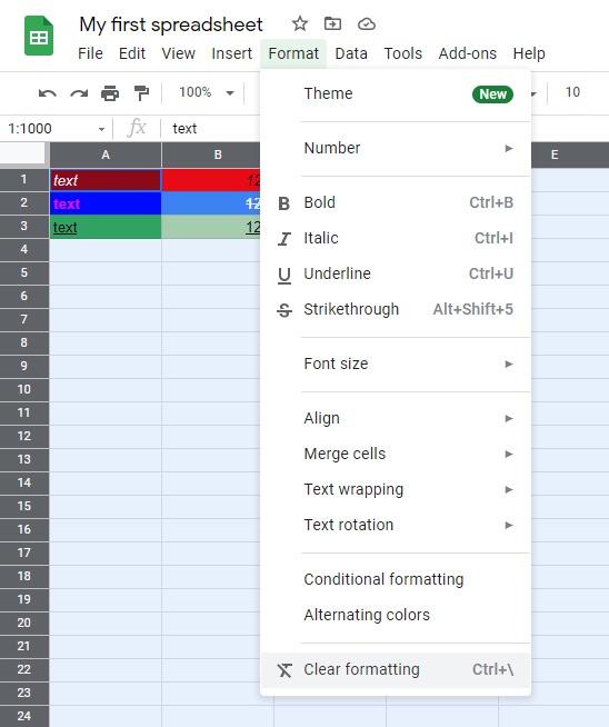 Google Sheets Clear Format