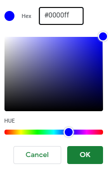 Colors are specified by selection or by using Hexadecimal (HEX) codes.