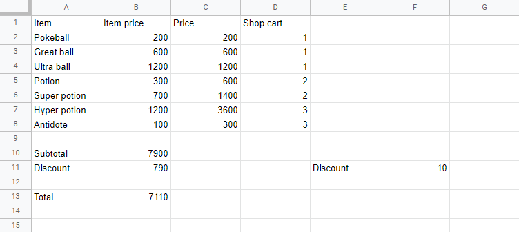 Now, do the same for cells B10, B11 and B13: