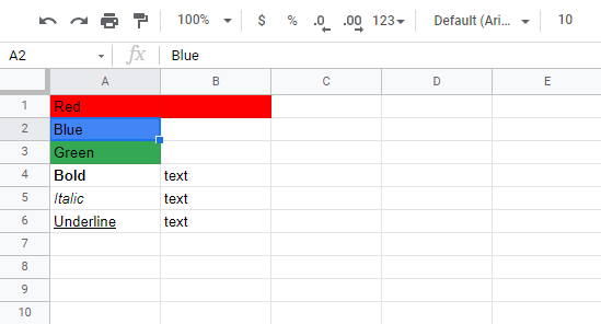 Let's try some examples and copy formats with Colors and font Characteristics, such as bold, italic and underline: