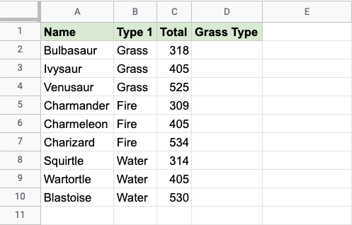 The condition is if the "Type 1" value for the Pokemon is "Grass".