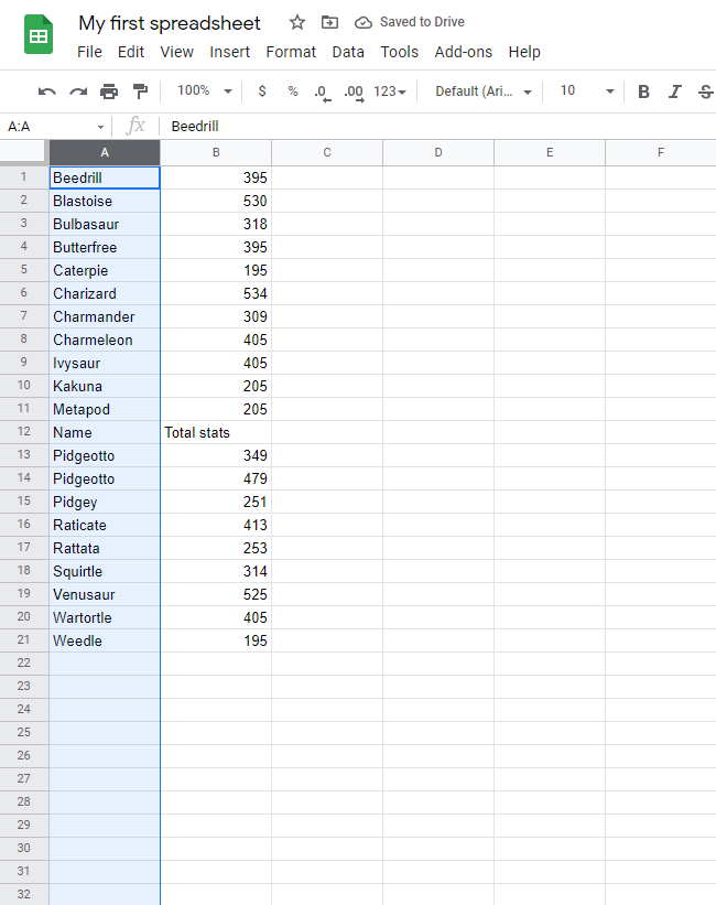 - Click on the Data menu and select Sort sheet by column A, A → Z
