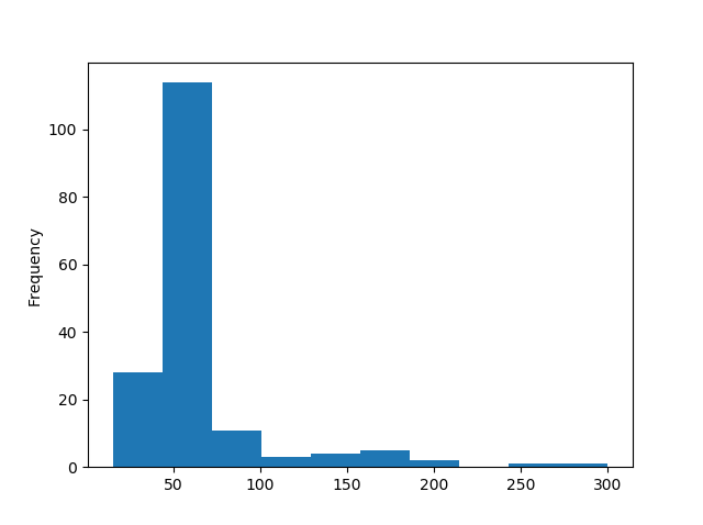 Note: The histogram tells us that there were over 100 workouts that lasted between 50 and 60 minutes.