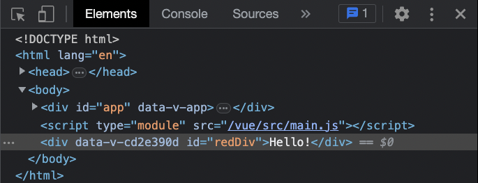 Relevant code from the <style> and <script> tags still works for the teleported <div> tag even though it is no longer inside the component after compilation.